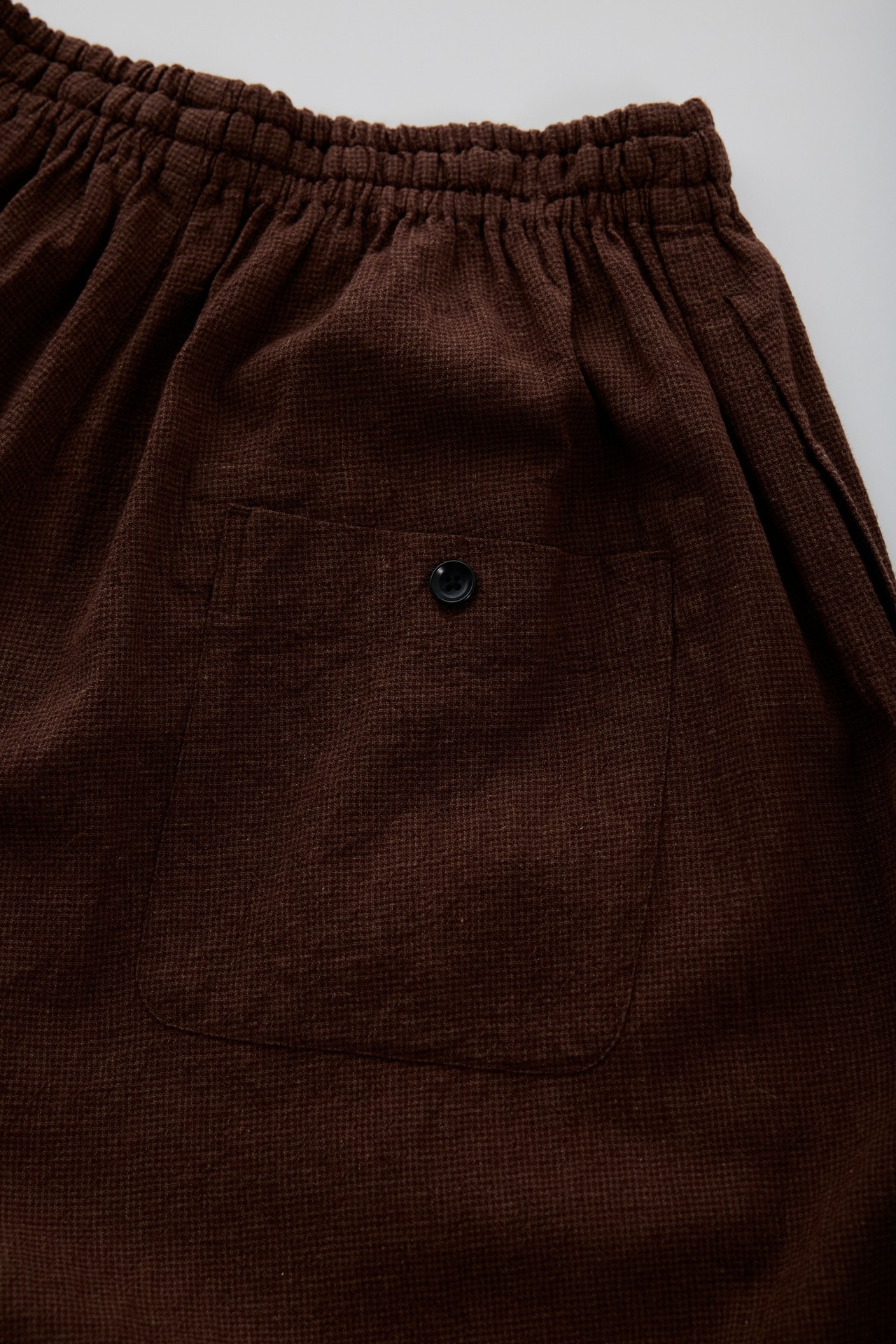 細かな千鳥格子のリネン55%、コットン45%のしなやかな生地を使用。