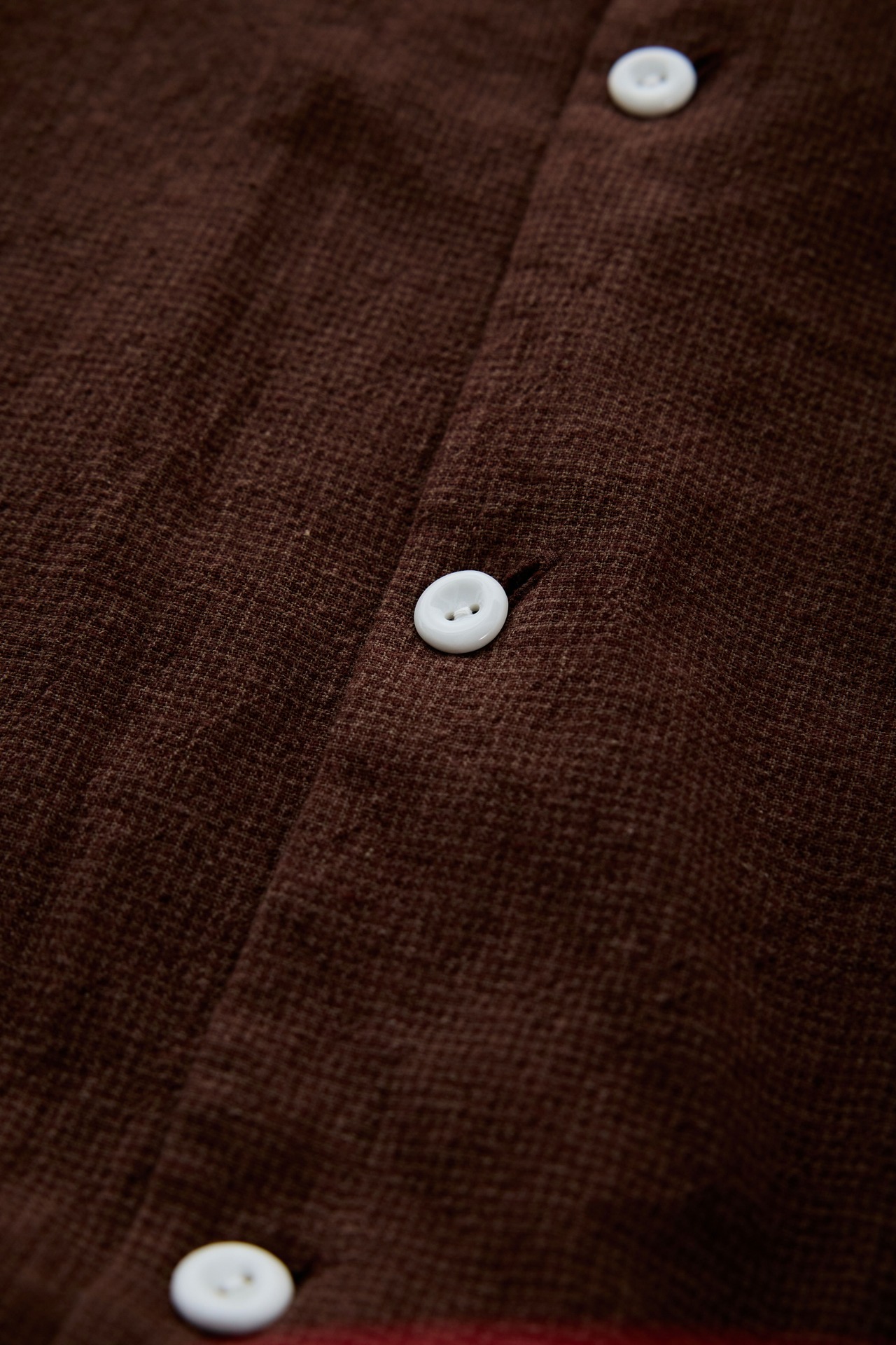 一枚仕立ての襟元はボタンの止め位置によって変化を楽しんでいただけます。