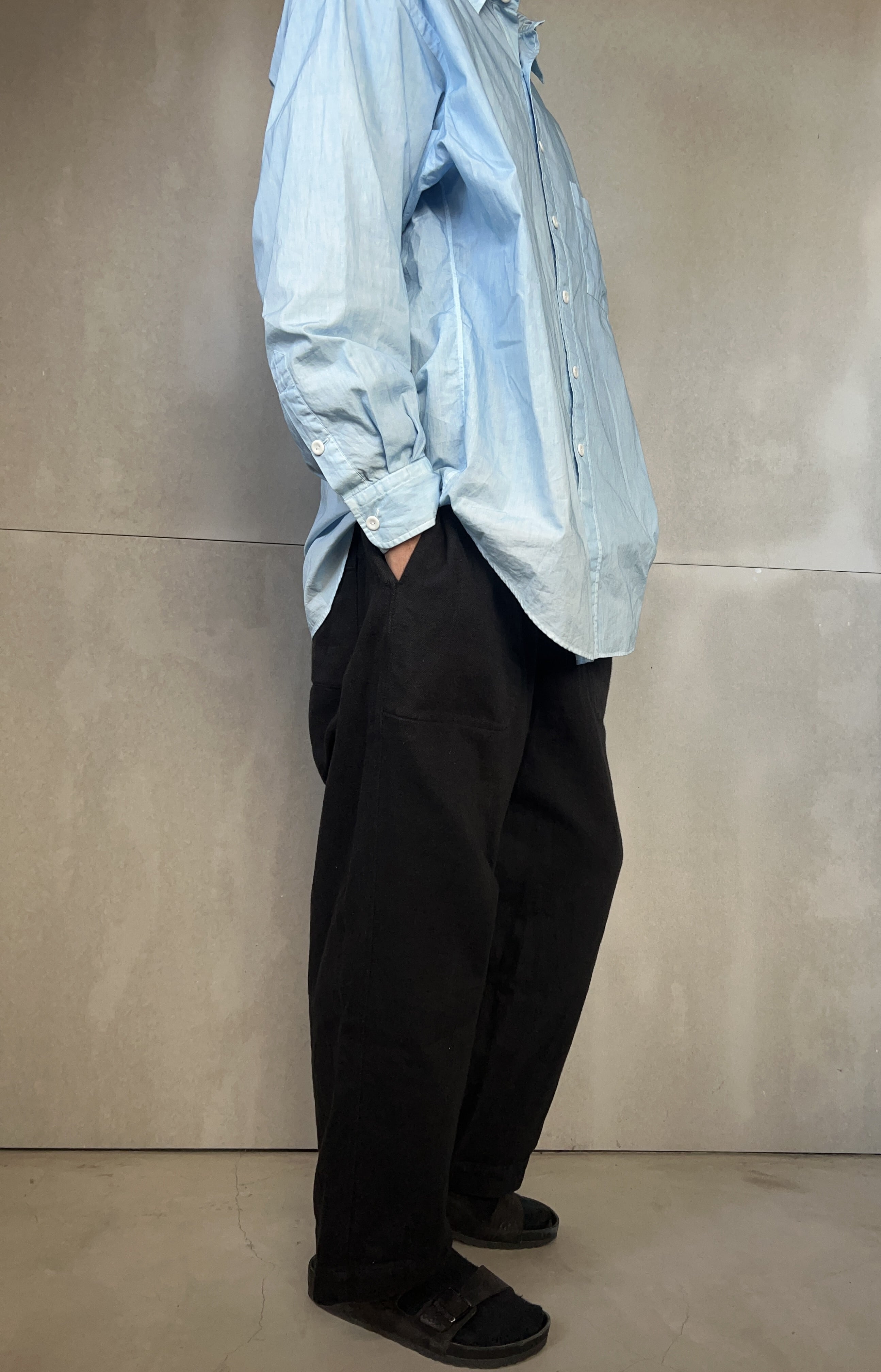腰回りがゆったりとしたシルエットでリラックスしたムードのイージーパンツ。裾に向かってテーパードしたタイプと、裾までワイドな2タイプをラインナップ。