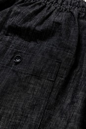反応染料による糸染めで色落ちが少なく、緯糸の白糸とのコントラストが素晴らしい生地です。